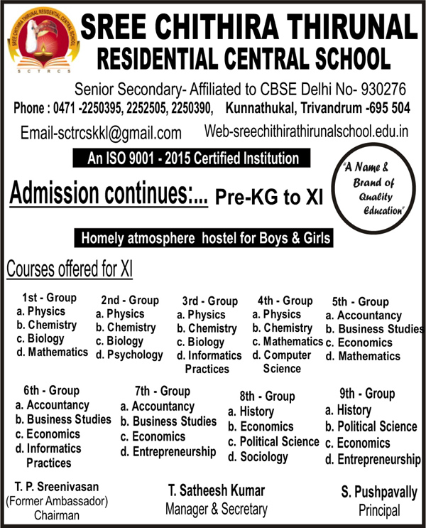 Sree Chithira Thirunal Residential Central School in the name of great SREE CHITHIRA THIRUNAL BALARAMAVARMA MAHARAJA of Travancore started in the year 2003 conceptualized to create excellence in Education. We believe that every child is a gift of God to mankind and pride of human race. High academic standard are symbolic of its ideology and commitment to academic excellence.