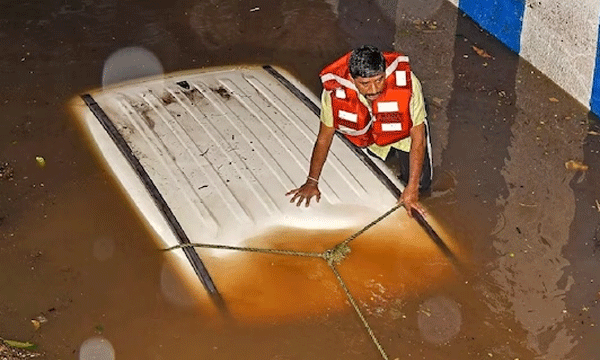 അതേസമയം, കെ.ആര്. സര്ക്കിളില് രണ്ട് ഓട്ടോറിക്ഷകളും വെള്ളക്കെട്ടില് മുങ്ങി. ഇതില് ഒന്നിലെ യാത്രക്കാരിയും ഡ്രൈവറും ഓട്ടോയ്ക്കു മുകളില് കയറി ജീവന് രക്ഷിച്ചു. മല്ലേശ്വരം, രാജാജി നഗര്, ശ്രീരാംപുരം, കെന്ഗെരി മേഖലകളിലും അപ്രതീക്ഷിതമഴയും വെള്ളക്കെട്ടും ദുരിതം വിതച്ചു. നിരവധി വീടുകളിലും വ്യാപാരസ്ഥാപനങ്ങളിലും വെള്ളംകയറി. പഴക്കംചെന്ന ഒരു ബഹുനിലമന്ദിരം തകര്ന്നെങ്കിലും ആളപായമില്ല.