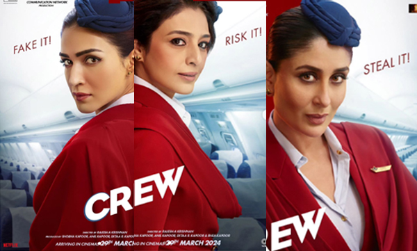 ബോളിവുഡിന്റെ പ്രിയ അഭിനേത്രികളാണ് കൃതി സനോനും കരീന കപൂറും തബുവും. ഇവർ മൂന്നുപേരും അഭിനയ മേഖലയിൽ തിളങ്ങി നിൽക്കുന്ന താരങ്ങളാണ്. ഇപ്പോഴിതാ ഇവർ മൂന്നാളും കൂടി ബാഡസ് എയർ ഹോസ്റ്റസുമാരായി അവരുടെ ഗ്ലാമറസ് പ്രഭാവലയത്തോടെ ഫുൾ-ഓൺ വിനോദം കൊണ്ടുവരുകയാണ്. കരീന കപൂർ, തബു, കൃതി സനോൺ എന്നിവർ ഒരുമിച്ചെത്തുന്ന ക്രൂ എന്ന സിനിമയുടെ ആദ്യ പോസ്റ്ററുകൾ ആരാധകർക്ക് മുന്നിലെത്തി. കൃതി തന്റെ സോഷ്യൽ മീഡിയയിലൂടെ ഫസ്റ്റ് ലുക്ക് പോസ്റ്റർ പങ്കു വച്ചിട്ടുണ്ട്. "ചെക്ക്-ഇൻ ചെയ്യാൻ തയ്യാറാണോ? ജോലിക്കാർക്കൊപ്പം പറക്കാൻ സമയമായി!.." എന്ന ക്യാപ്ഷൻ നൽകിയാണ് കൃതി പോസ്റ്റർ പങ്കുവച്ചിരിക്കുന്നത്. റെഡ് യൂണിഫോമും ബ്ലൂ ഹാറ്റും വച്ച് മോഷ്ടിക്കുക, വ്യാജമാക്കുക, അപകടപ്പെടുത്തുക എന്നിങ്ങനെ ക്യാപ്ഷൻ നൽകിയാണ്ത പോസ്റ്ററിൽ ഈ സ്റ്റണ്ണിങ് താരങ്ങളെ കാണാൻ കഴിയുന്നത്. ഈ വർഷം മാർച്ച് 29 ന് ചിത്രം തിയേറ്ററുകളിൽ എത്തും.