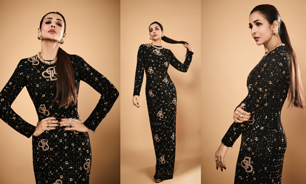 ഇപ്പോഴിതാ ഗോൾഡൻ മോസൈക് ബോഡിക്കോൺ ഗൗണിൽ എലഗന്റ് ലുക്കിലുള്ള ചിത്രങ്ങൾ പങ്കിടുകയാണ് മലൈക. ബ്ലാക്ക് ഗോൾഡൻ മിക്സ് ഈ ഔട്ട്ഫിറ്റിനെ വെളിച്ചത്തിന്റെയും നിഴലിന്റെയും ഒരു മാസ്റ്റർപീസ് ആക്കുന്നു. സുതാര്യമായ ഓവർലേയും പ്രത്യേകം തയ്യാറാക്കിയ സിലൗറ്റും മോഡേൺ ട്രെഡിഷണൽ ലുക്ക് നൽകുന്നു.