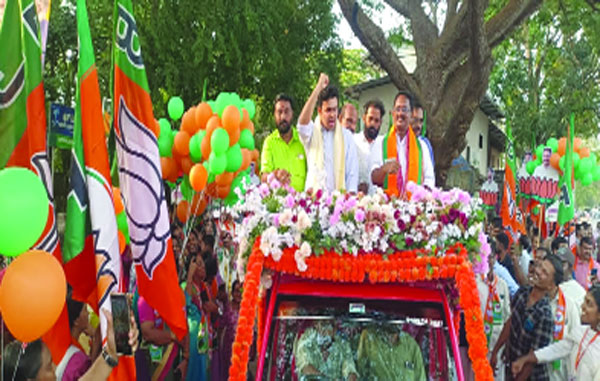 രണ്ടുപേരെയും മുന്നോട്ട് നയിക്കുന്നത് ഒരേ രാഷ്ട്രീയമാണ്. പരസ്പരം അഴിമതി കാണിക്കാനും പ്രീണനം നടത്താനും അവസരം ഒരുക്കി നല്കുക മാത്രമാണ് ഇരു മുന്നണികളും ചെയ്യുന്നത്. എസ.്ഡി.പി.ഐ യോടൊപ്പം ജമാഅത്തെ ഇസ്ലാമിയോടൊപ്പം വേദി പങ്കിടാനും ഒറ്റക്കെട്ടായി പ്രവര്ത്തിക്കാനും മടിയില്ലാത്തവരാണ് എല്ഡിഎഫും യു.ഡി.എഫും. അഴിമതിക്കും വര്ഗീയ രാഷ്ര്ടീയത്തിനും അവസാനം കുറിക്കുന്നതാണ് ഈ തെരഞ്ഞെടുപ്പെന്നും അദ്ദേഹം പറഞ്ഞു. ചടങ്ങില് എന്.ഡി.എ നിയോജക മണ്ഡലം ചെയര്മാന് കെ. ശശീന്ദ്രന് അദ്ധ്യക്ഷനായി. സ്ഥാനാര്ത്ഥി ടി. ദേവദാസ് സംസാരിച്ചു. നന്മണ്ട ആര്.ടി.ഒ ടെസ്റ്റ് ഗ്രൗണ്ടിനു സമീപത്തു നിന്നും വാദ്യഘോഷങ്ങളുടെ അകമ്പടിയോടെ സ്ത്രീകള് ഉള്പ്പെടെ നൂറു കണക്കിന് പ്രവര്ത്തകര് പങ്കെടുത്ത റോഡ് ഷോ നന്മണ്ടയില് ആവേശം വിതറി. റോഡ് ഷോയ്ക്ക് കെ. രജനീഷ് ബാബു, ടി .എ നാരായണന്, എം.ഇ ഗംഗാധരന്, പി. സി അഭിലാഷ്, ആര്. ബിനീഷ്, വി.വി സ്വപ്നേഷ്, ബിജീഷ് അയോദ്ധ്യ, സഞ്ജുനാഥ്, ഷിജില, വി.വി ശ്രീഹരി, ഗിരിജ വലിയ പറമ്പില്, സത്യഭാമ ഇടവനക്കണ്ടി, കെ. ശ്രീകുമാര്, എന് .കെ രാജു തുടങ്ങിയവര് നേതൃത്വം നല്കി. വിഷന് 2031 ന്റെ ലോഗോ പ്രകാശനവും തേജസ്വി സൂര്യ നിര്വ്വഹിച്ചു.