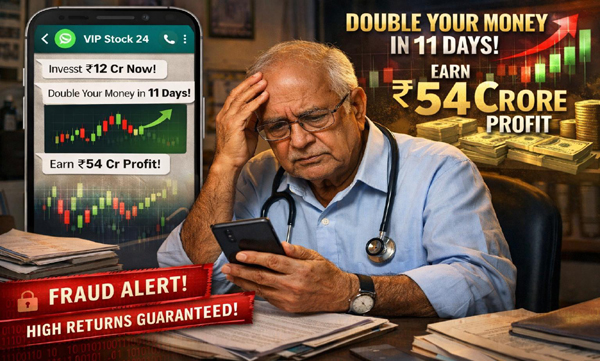 കഴിഞ്ഞ ജനുവരിയിലാണ് എഴുപത്തഞ്ചുകാരനായ ഡോക്ടര്ക്കു ഓഹരിവിപണിയില് പണം നിക്ഷേപിച്ചാല് വന്തുക ലാഭം വാഗ്ദാനം ചെയ്ത് അജ്ഞാത ഫോണ് നമ്പറില്നിന്ന് ആദ്യമായി സന്ദേശമെത്തിയത്. കുറഞ്ഞ കാലയളവില് കൂടുതല് ലാഭമെന്ന മോഹനവാഗ്ദാനത്തില് ഡോക്ടര് വീണു. തുക നല്കാമെന്നു സമ്മതം മൂളിയതോടെ 'വി.ഐ.പി. സ്റ്റോക്ക് 24' എന്ന വാട്ട്സ്ആപ്പ് ഗ്രൂപ്പില് ഡോക്ടറെ തട്ടിപ്പുകാര് അംഗമാക്കി. ആകര്ഷകവും ലാഭദായകവുമായ നിക്ഷേപ പദ്ധതികളുടെ വിശദാംശങ്ങള് ഈ ഗ്രൂപ്പിലൂടെ കൈമാറിയതോടെ വിശ്വാസം ഇരട്ടിച്ചു. പിന്നാലെ വിഖ്യാത രാജ്യാന്തര സ്ഥാപനത്തിന്റെ പേരിനോടു സാമ്യമുള്ള ഓഹരിയില് ഇടപാടുകള് നടത്താന് തട്ടിപ്പുകാര് നിര്ദേശിച്ചു. ഇതിനായി ഡോക്ടറുടെ വ്യക്തിഗത, അക്കൗണ്ട് സംബന്ധിയായ വിശദാംശങ്ങള് തേടി. വൈകാതെ വ്യത്യസ്ത ബാങ്ക് അക്കൗണ്ടുകളിലേക്കു തുക നിക്ഷേപിക്കാന് അഭ്യര്ഥിച്ചു. ഇതോടെ എട്ട് തവണകളായി 12.31 കോടി രൂപ ഡോക്ടര് നിക്ഷേപിച്ചു. മാര്ച്ച് ഏഴുമുതല് 18 വരെയുള്ള തീയതികളിലായി എട്ടു വ്യത്യസ്ത അക്കൗണ്ടുകളിലേക്കാണു പണം കൈമാറിയത്.