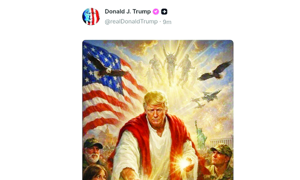അതിനിടെ, സ്വയം യേശുവായി ചിത്രീകരിച്ചുള്ള എ.ഐ. ചിത്രം ട്രംപ് സാമൂഹികമാധ്യമത്തില് പങ്കുവച്ചു. രോഗശാന്തി നല്കുന്ന യേശുവായി ട്രംപിനെ ചിത്രീകരിച്ചുള്ള എ.ഐ. ചിത്രമാണ് ട്രംപ്തന്നെ ട്രൂത്ത് സോഷ്യലില് പങ്കുവച്ചത്. അമേരിക്കന് ദേശീയപതാകയുടെ പശ്ചാത്തലത്തിലുള്ള ചിത്രത്തില് യു.എസ്. സൈനികരെയും നഴ്സുമാരെയും രോഗിയെയും പരുന്തിനെയും ഉള്പ്പെടുത്തിയിട്ടുണ്ട്. രോഗിയുടെ തലയില് കൈവച്ച് രോഗശാന്തി നല്കുന്ന ട്രംപിന്റെ ചിത്രം ഇതിനോടകം വൈറലാണ്. 'ലിയോ പതിനാലാമന് മാര്പാപ്പ നന്ദി പറയണം, കാരണം എല്ലാവര്ക്കും അറിയാം, അദ്ദേഹം ഒരു അത്ഭുതമായിരുന്നു. അദ്ദേഹം മാര്പാപ്പയാകാനുള്ള ഒരു പട്ടികയിലും ഉണ്ടായിരുന്നില്ല. അമേരിക്കക്കാരനായതുകൊണ്ട് മാത്രമാണ് സഭ അദ്ദേഹത്തെ നിയോഗിച്ചത്. ഡോണള്ഡ് ട്രംപിനെ നേരിടാന് ഇതായിരുന്നു നല്ലതെന്ന് അവര് കരുതി. ഞാന് വൈറ്റ് ഹൗസില് ഇല്ലായിരുന്നെങ്കില് ലിയോ വത്തിക്കാനില് ഉണ്ടാകുമായിരുന്നില്ല.'- അദ്ദേഹം കുറിച്ചു. പോസ്റ്റ് വിവാദമായതിനെ തുടര്ന്നു പോസ്റ്റ് ട്രംപ് പിന്വലിച്ചു.